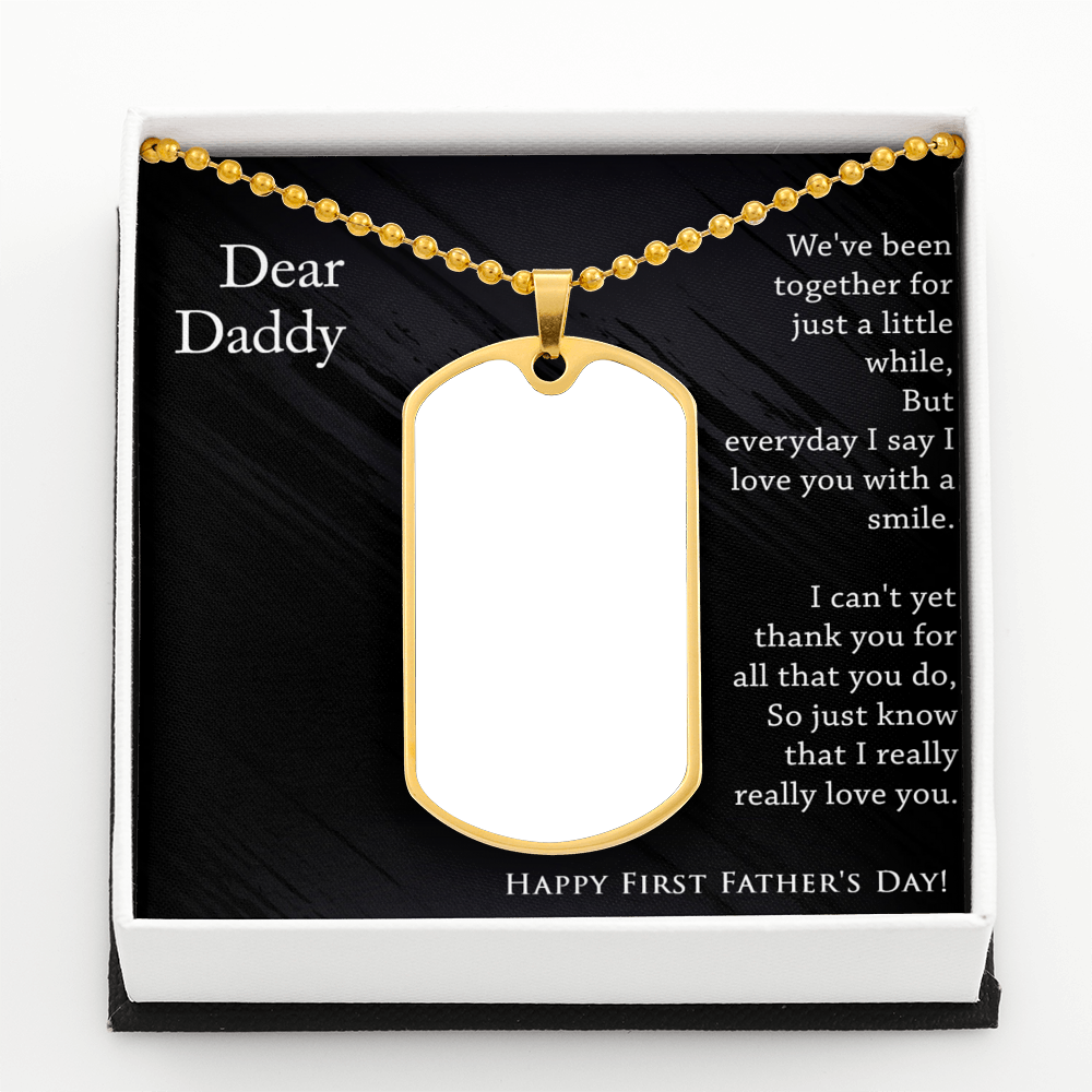 Dear Daddy First Father's Day Gift - Dog Tag Necklace Military Chain