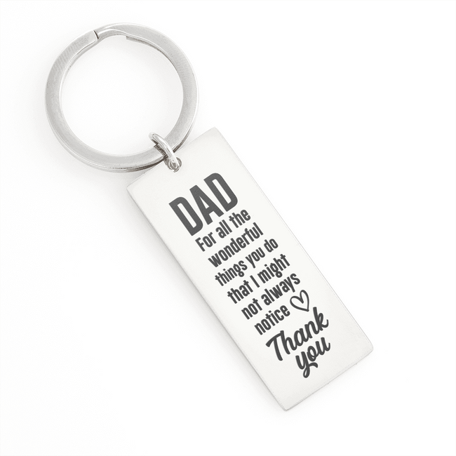 This keyring is the perfect gift choice for your loved ones. Surprise them with this personalized keyring and melt their heart! Each message is laser etched by our skilled artisans to ensure that it will never fade away, keeping your important message close to your loved one forever. We offer Domestic and Global Shipping! Product Details: Keyring Size: 1 inch in diameter Pendant Size: 2" x 0.8" (5cm x 2 cm). Laser engraved for maximum durability Material: Polished Stainless Steel